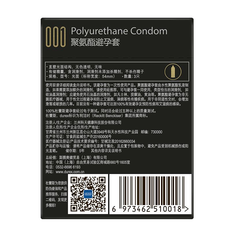 【避孕润滑】轻薄顺滑001(3只装) 杜蕾斯